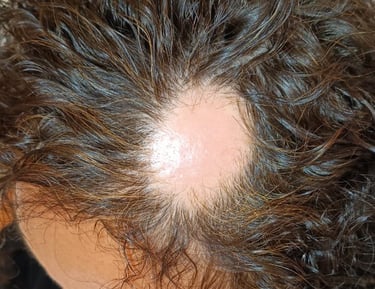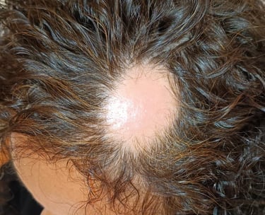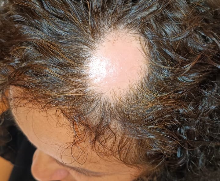 Doença autoimune que causa a perda de cabelo em áreas circulares.