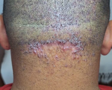 Foliculite do couro cabeludo é uma inflamação dos folículos pilosos (onde nasce o fio). Ela pode parecer uma "espinha" no couro cabeludo e, embora muitas vezes seja leve, pode causar bastante dor, coceira e até levar à queda de cabelo se não for tratada.